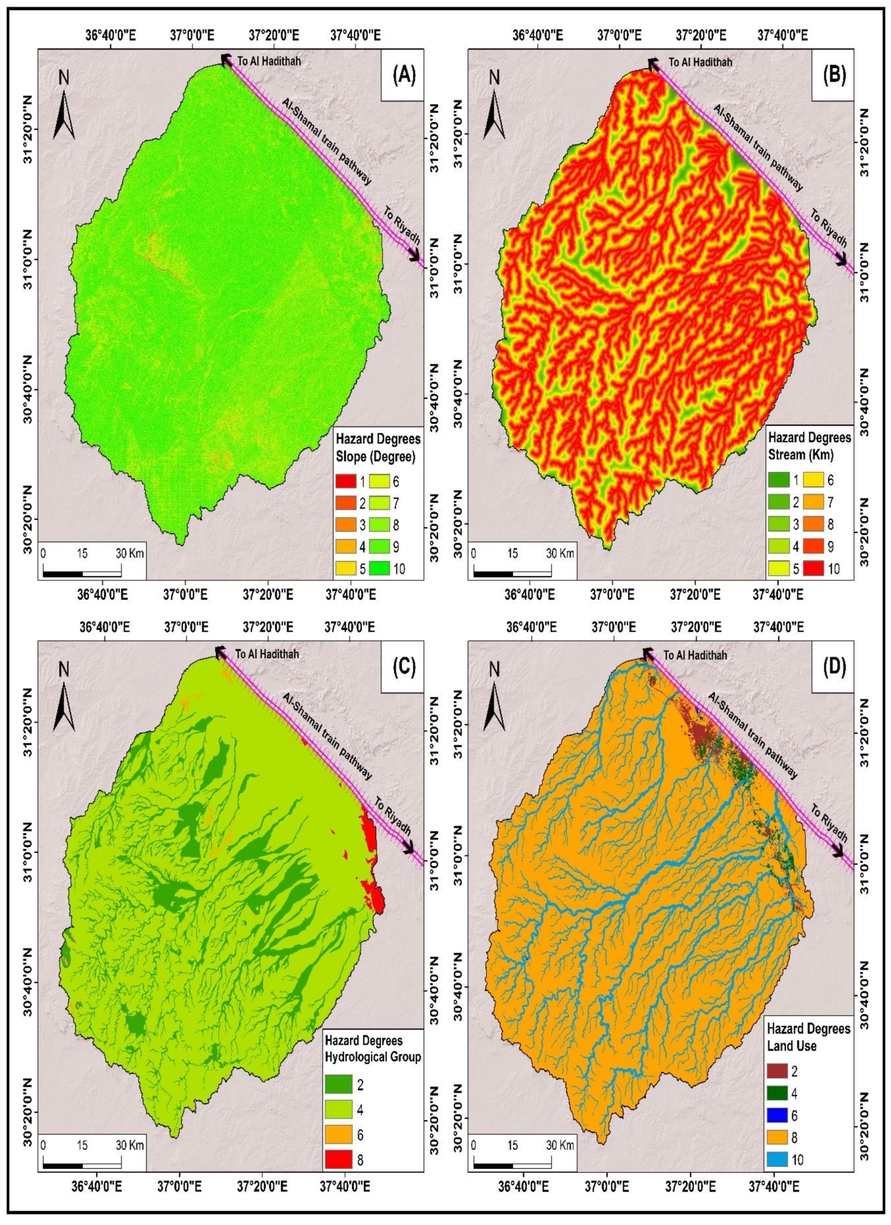 Water Free Full Text Integration Of Gis Based Multicriteria Decision Analysis And Analytic Hierarchy Process To Assess Flood Hazard On The Al Shamal Train Pathway In Al Qurayyat Region Kingdom Of Saudi Arabia
